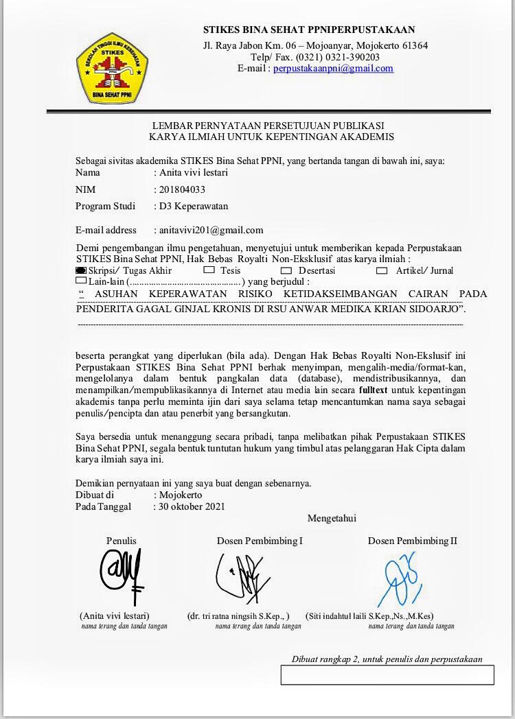 ASUHAN KEPERAWATAN RESIKO KETIDAKSEIMBANGAN CAIRAN PADA GAGAL GINJAL KRONIS DI RSU ANWAR MEDIKA KRIAN SIDOARJO